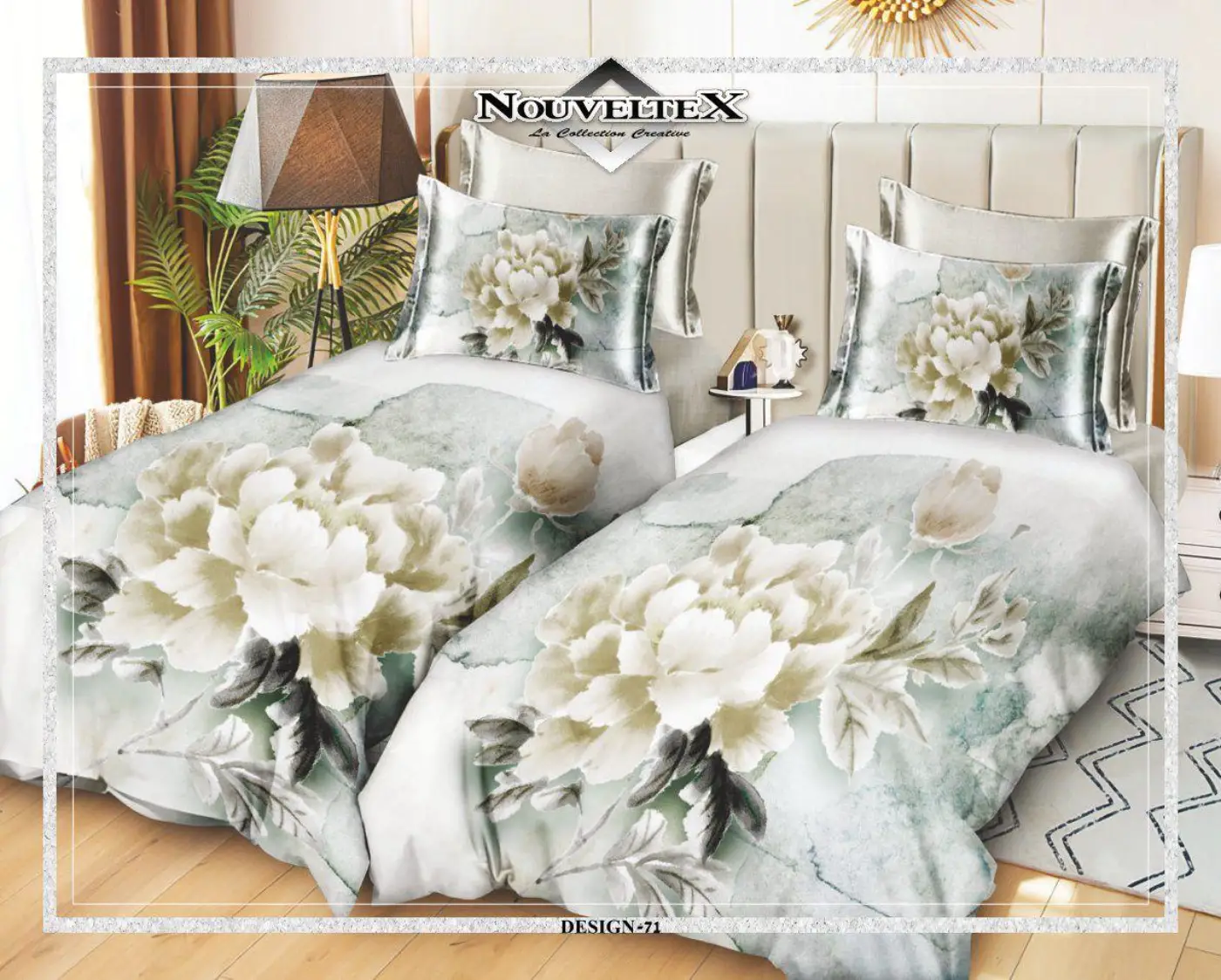 מארז 2 סט מצעים כותנה פרקל, צפיפות 200 חוט, דגם אמרלד בלום.