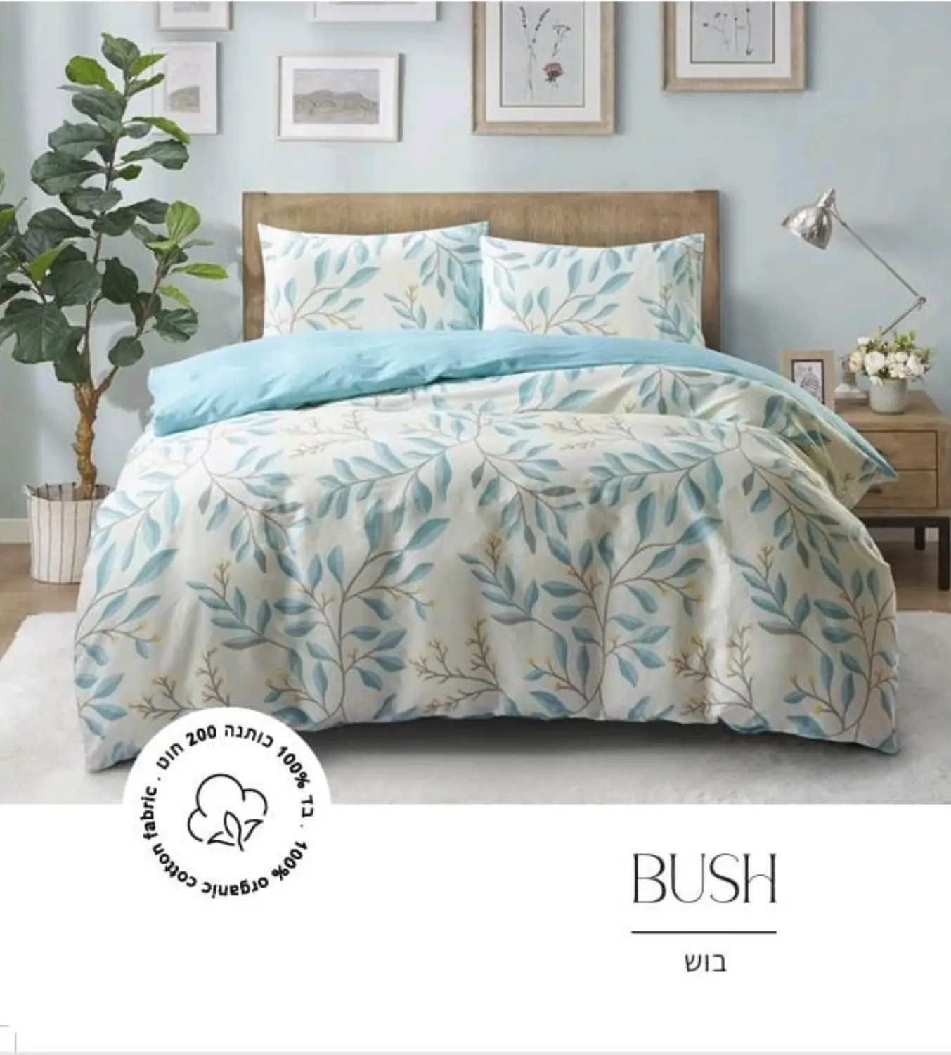 סט מצעים 100% כותנה, צפיפות 200 חוט, דגם בוש