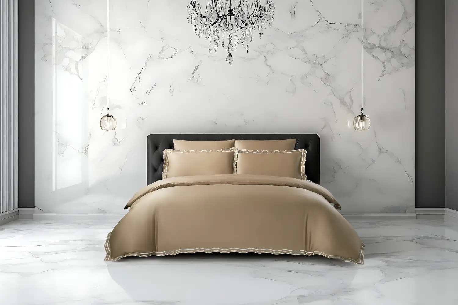 סט מצעים 100% כותנה באריגת סאטן, צפיפות 300 חוט, דגם יוקרתי גלית.