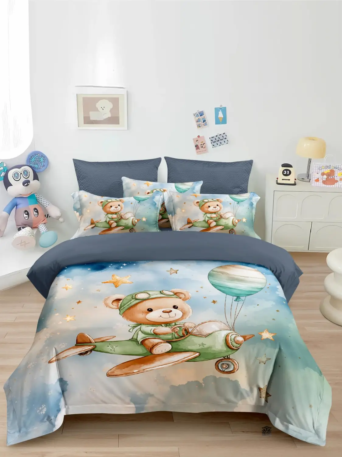 סט מצעים כותנה פרקל, צפיפות 180 חוט, דגם דובי בעננים