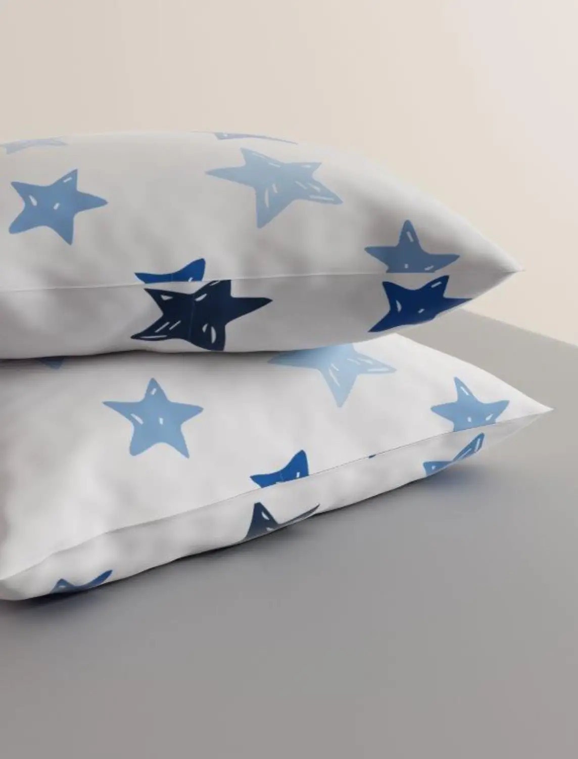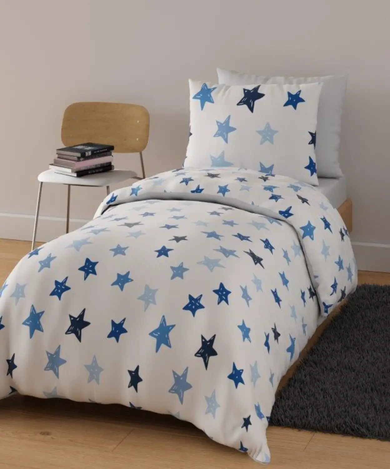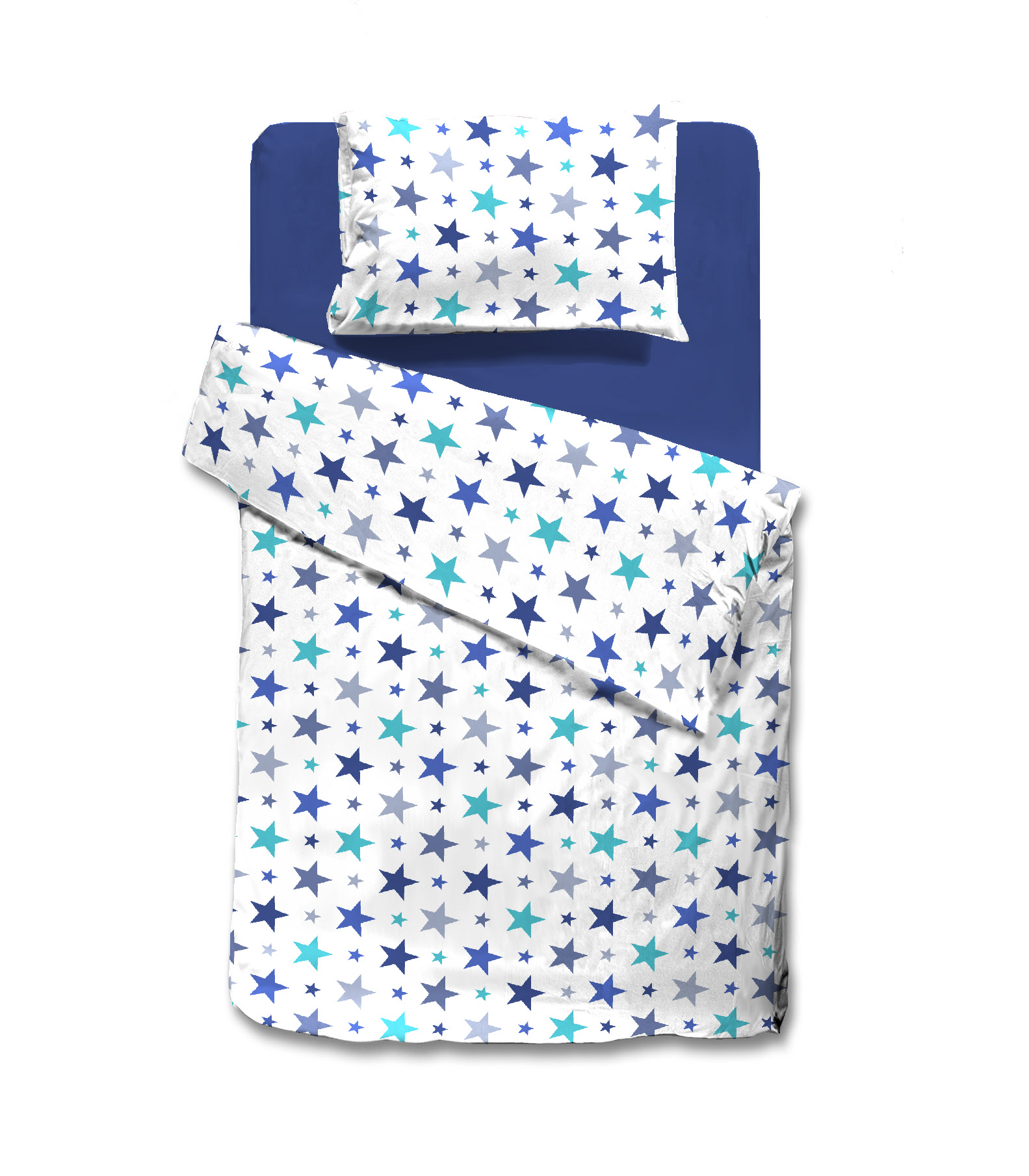 סט מצעים 100% כותנה, דגם כוכבים כחול