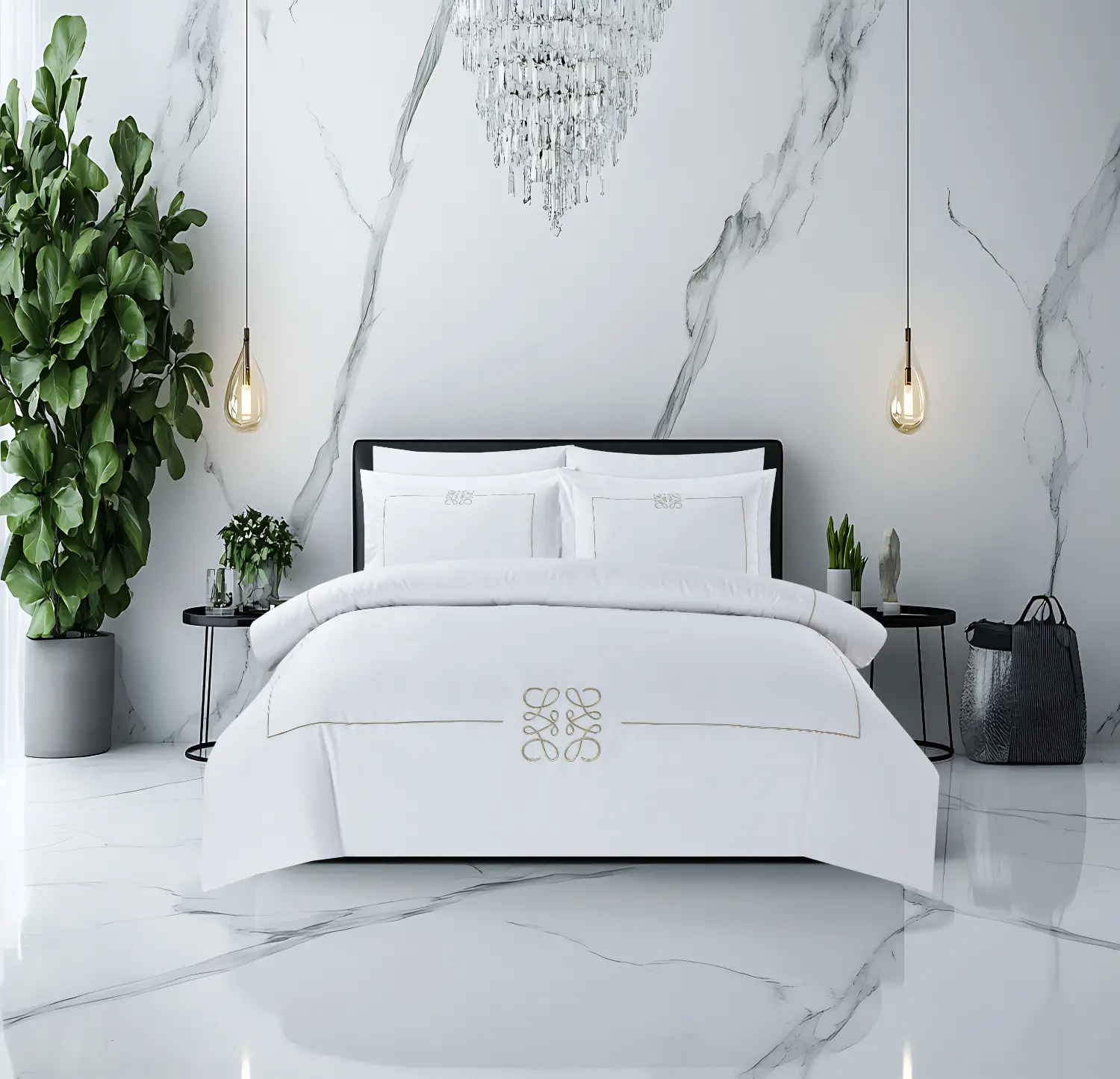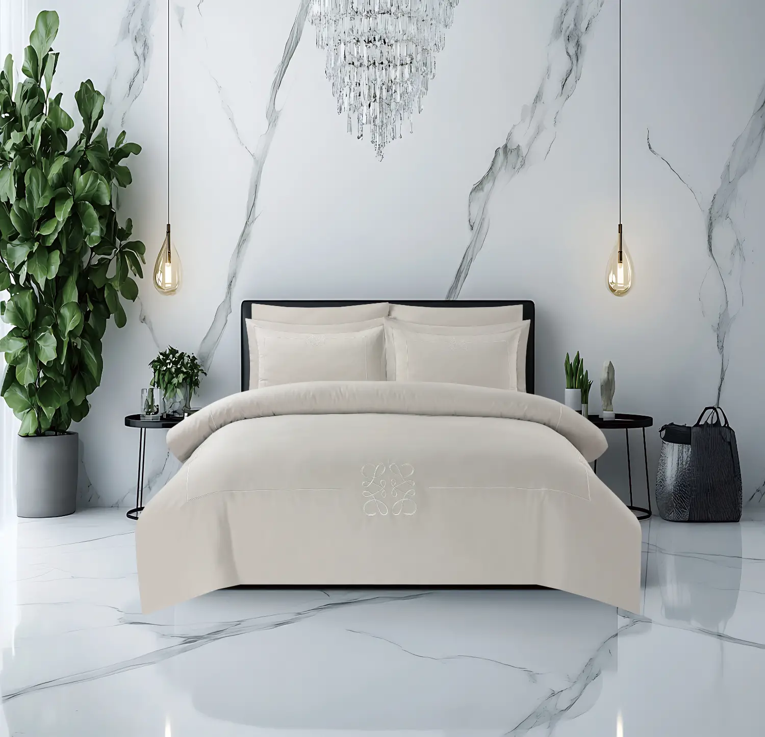 סט מצעים 100% כותנה באריגת סאטן, צפיפות 300 חוט, דגם יוקרתי ליה.
