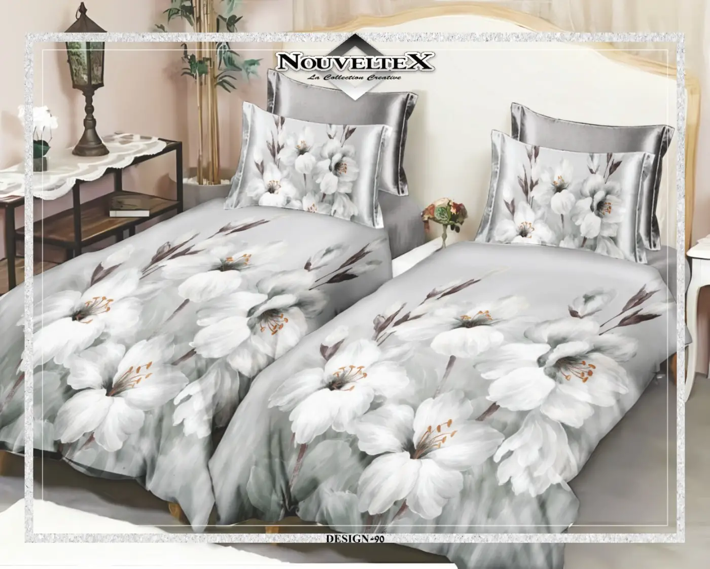 מארז 2 סט מצעים כותנה פרקל, צפיפות 200 חוט, דגם מגנוליה טהורה.
