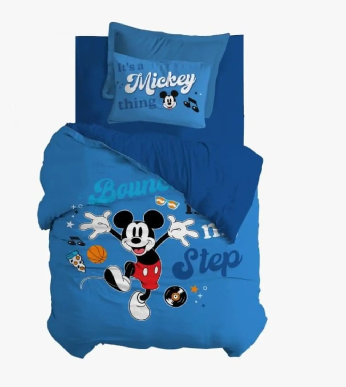 סט מצעים 100% כותנה, צפיפות 150 חוט, דגם מיקי בלו