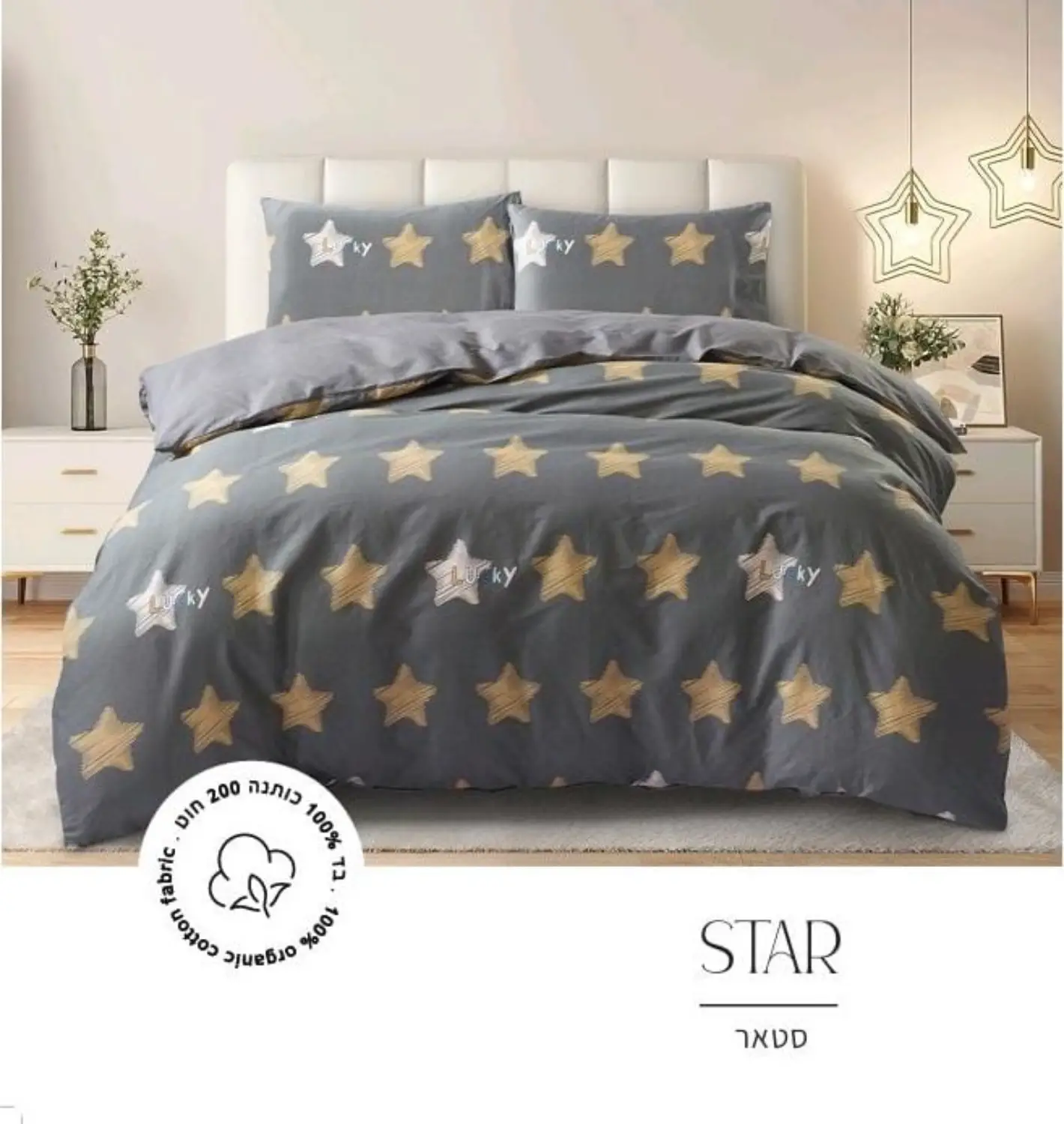 סט מצעים 100% כותנה, צפיפות 200 חוט, דגם סטאר