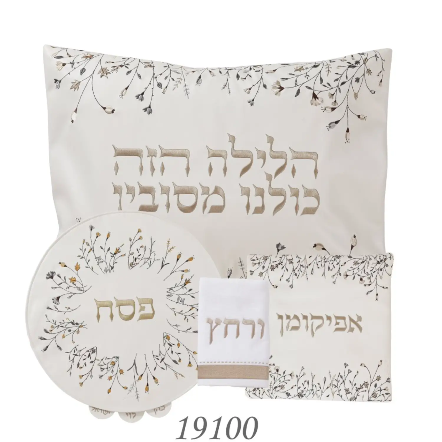סט לפסח- כולל 4 פריטים: ציפית לכרית הסבה, כיסוי לקערה ולמצות, נרתיק לאפיקומן ומגבת לרחץ.