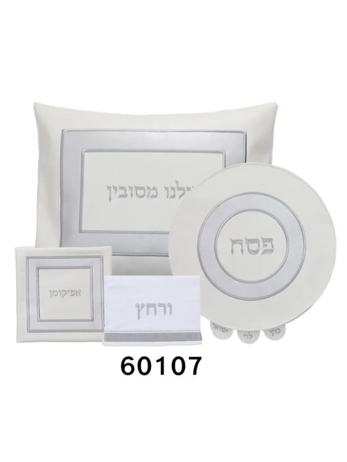 סט לפסח- כולל 4 פריטים: ציפית לכרית הסבה, כיסוי לקערה ולמצות, נרתיק לאפיקומן ומגבת לרחץ.
