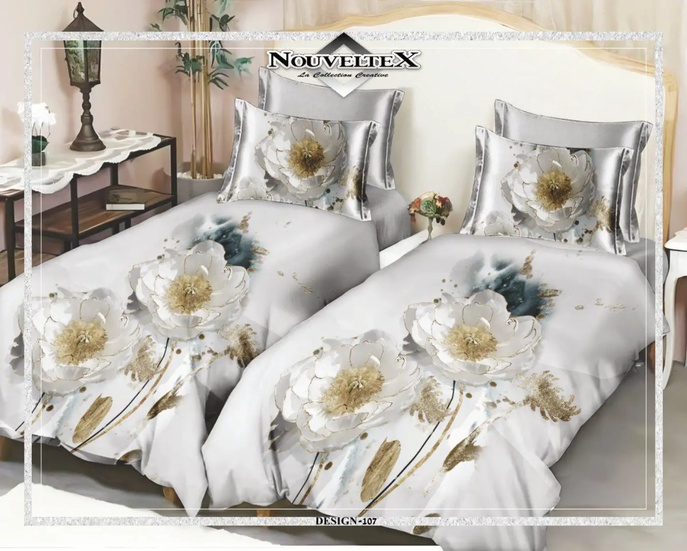 מארז 2 סט מצעים כותנה פרקל, צפיפות 200 חוט, דגם פיונה זהובה.
