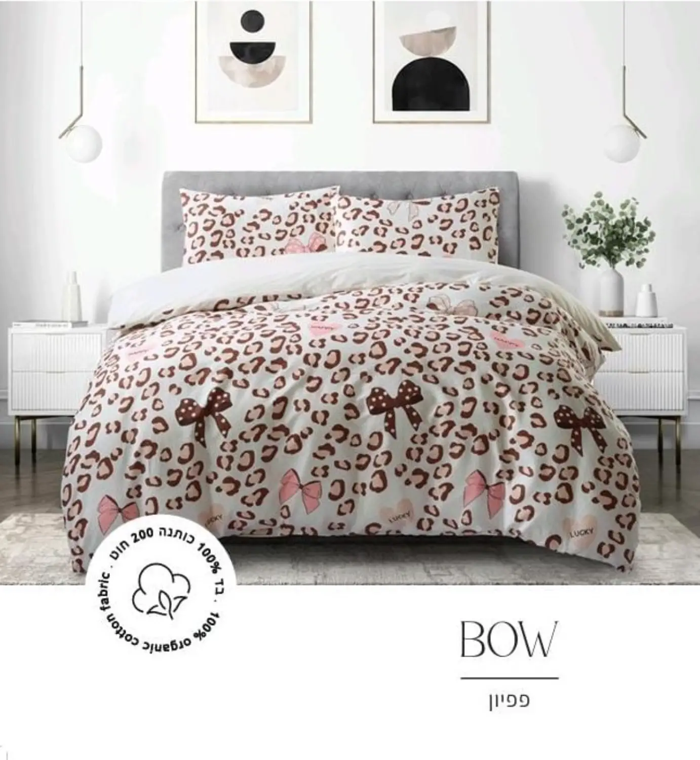 סט מצעים 100% כותנה, צפיפות 200 חוט, דגם פפיון