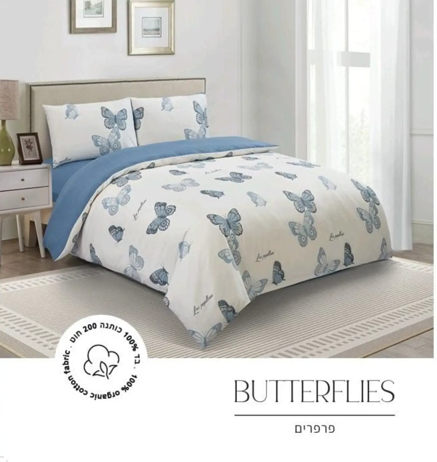 סט מצעים 100% כותנה, צפיפות 200 חוט, דגם פרפרים