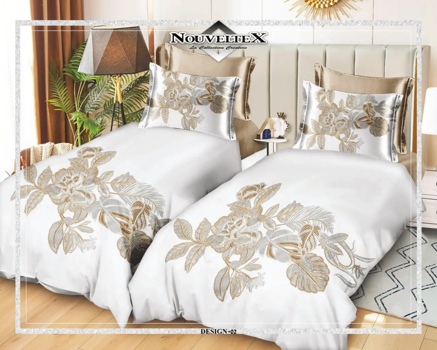 מארז 2 סט מצעים כותנה פרקל, צפיפות 200 חוט, דגם רויאל גולד.