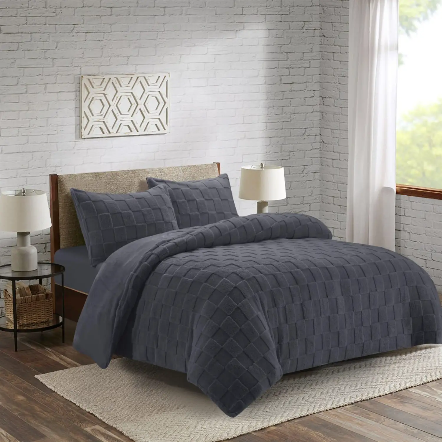 סט מצעי חורף מפנק במיוחד, עשוי בד קורל פליז. דגם שיבוץ חורפי.