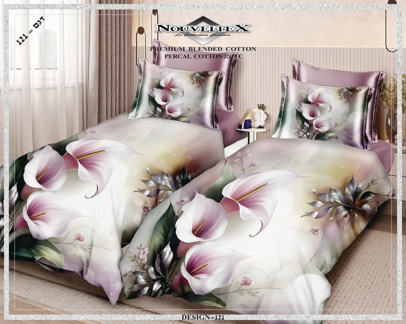 מארז 2 סט מצעים 100% כותנה סאטן, צפיפות 200 חוט, דגם 121