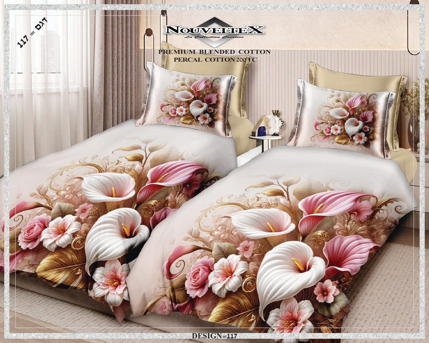מארז 2 סט מצעים 100% כותנה סאטן, צפיפות 200 חוט, דגם 117