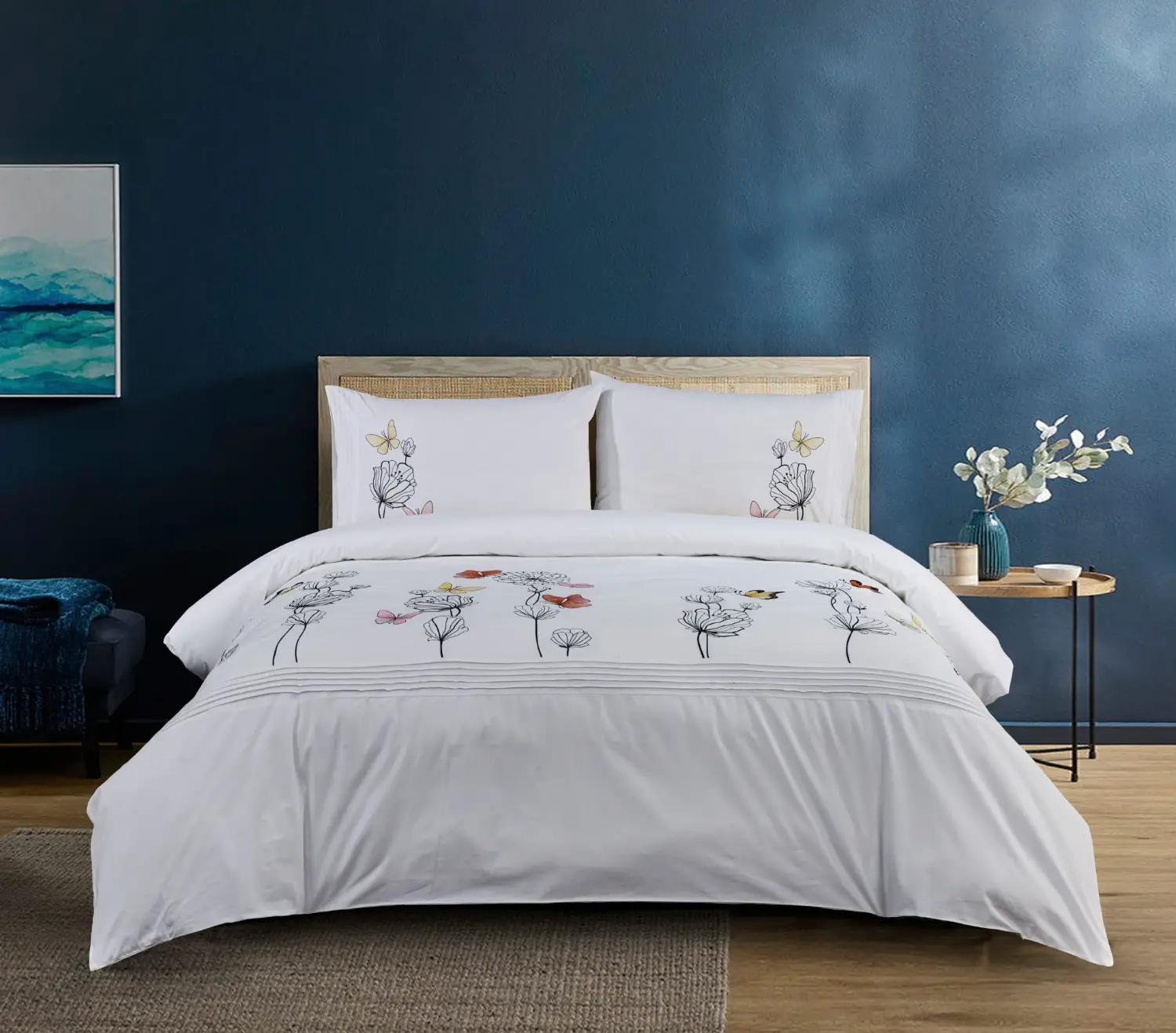 סט מצעים 100% כותנה, צפיפות 200 חוט, דגם יוקרתי בלו סקאי