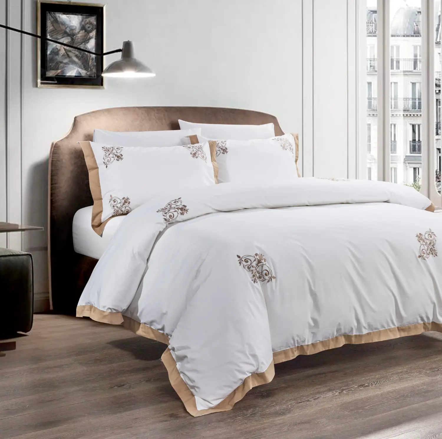 סט מצעים 100% כותנה, צפיפות 200 חוט, דגם יוקרתי הלנה לבן