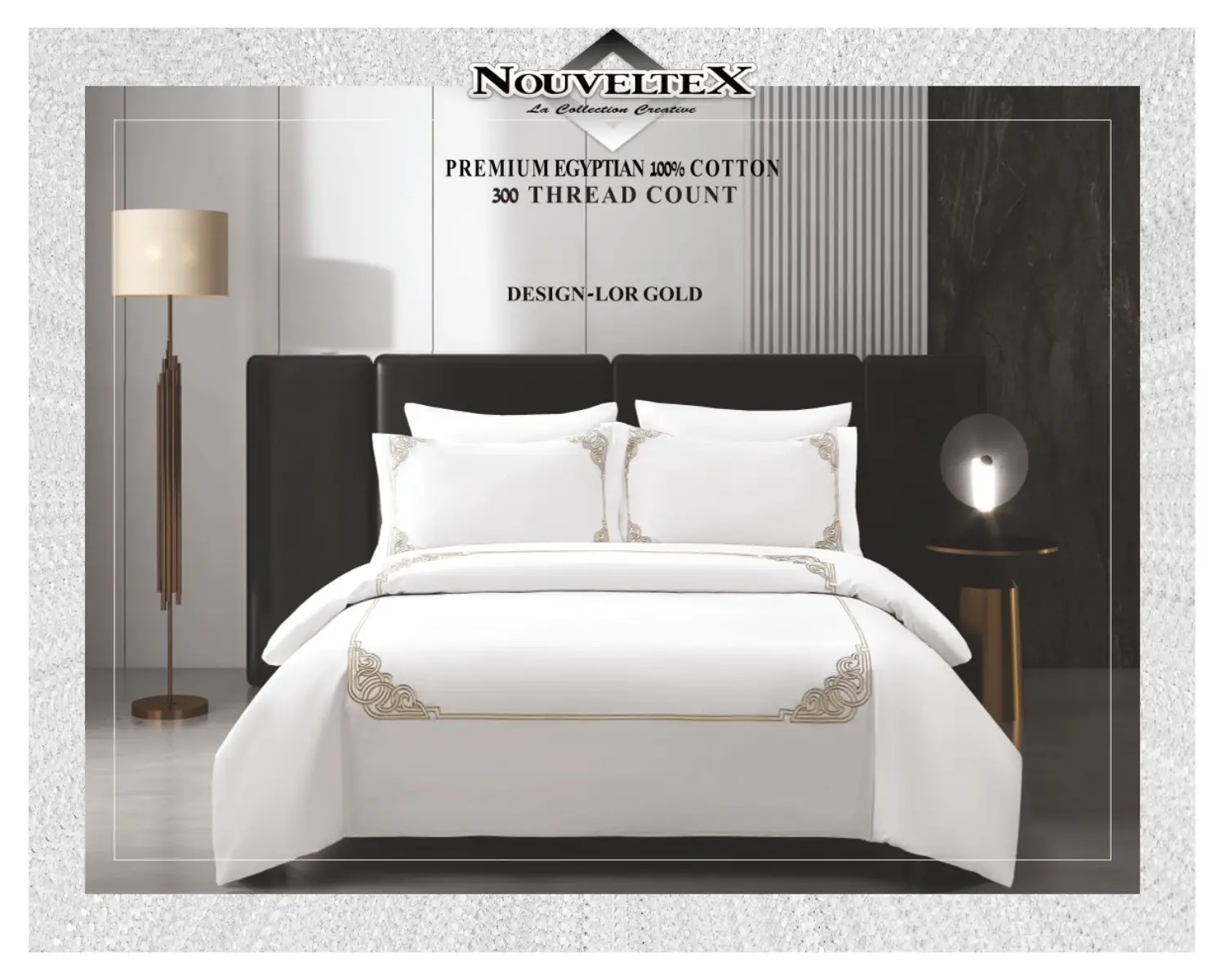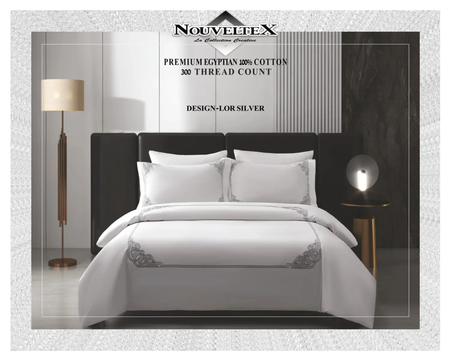 סט מצעים 100% כותנה מצרית באריגת סאטן, צפיפות 300 חוט, דגם יוקרתי LOR.